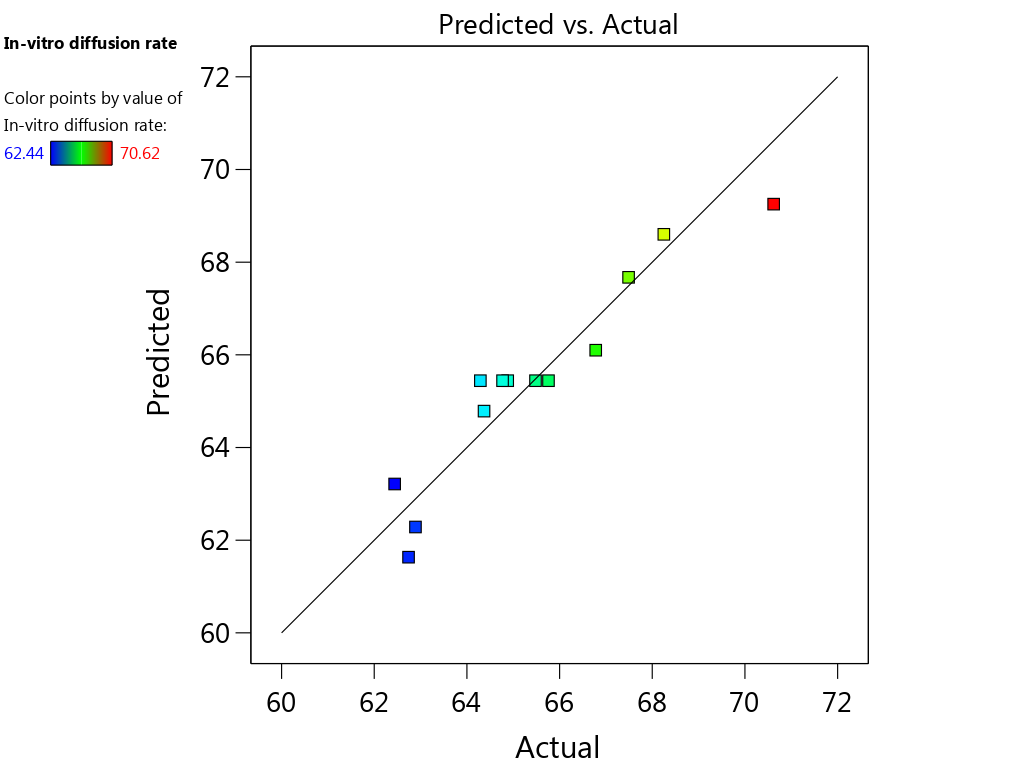 Fig. 6: Predicted Vs actual values for in vitro diffusion rate