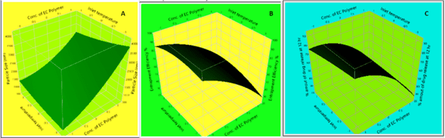 Where, X1=Polymer Concentration; X2= Inlet temperature; X3= Atomizing air pressure