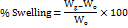 where, W0 is the initial weight of the beads and Wg is the weight of the alginate beads at equilibrium swelling.