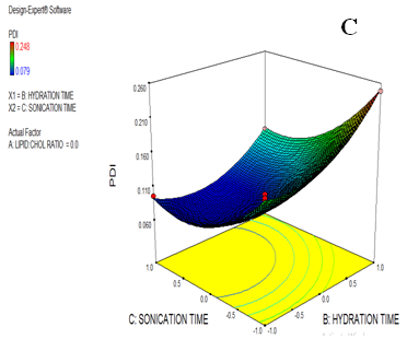 PDI, and vesicle size in range Y1= (20.990 ≤ Y ≤ 29.400), Y2 = (0.079≤ Y ≤0.250) and Y3 = (108.5.≤ Y ≤ 121.0)