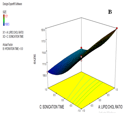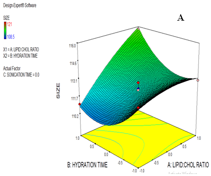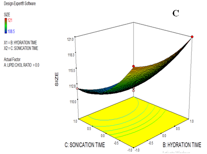 Fig. 5: A-C 3D surface response curves representing the vesicle size,
