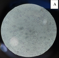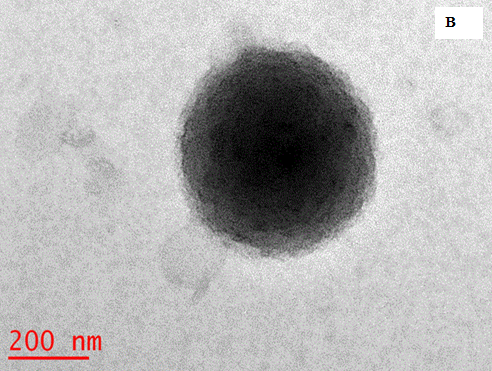 Fig. 6: Images of liposomes (A) Phase-contrast photomicrographs (40x) (B) TEM image