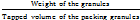 The most important parameters for determine the flowability are bulk density (BD), and tapped density (TD). These parameters were measured y using a graduated cylinder (100 ml in size); a suitable amount of granules was weighed and placed, after which the volume of granules was recorded. After that, the measuring cylinder was clicked at 2-second intervals for 2.5 cm height until no change in volume was detected [10].