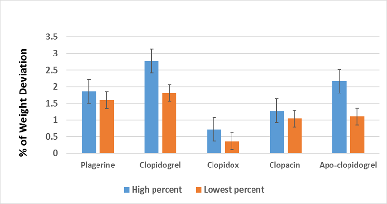 Fig. 3: Lowest and the highest percentage of weight deviation (mean±SD, n= 3)