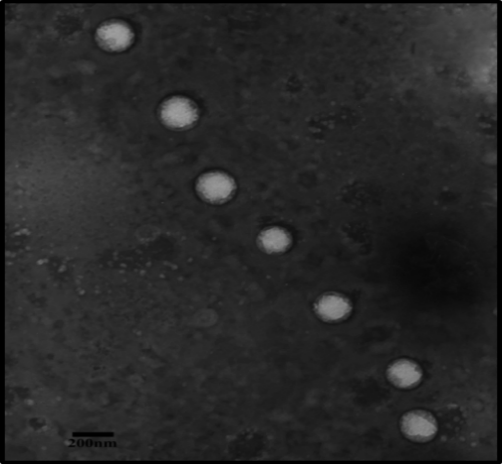 The morphology of phytosomes was spherical in shape with the size range of 200 nm can be seen in fig. 3. This result has similar reported by previous studies confirmed as a single spherical shape and self-closed structures of the vesicle commonly ranged 50 nm to 100 µm. The aggregation between vesicles was not visible and observed in mostly spherical vesicles, relatively uniform sizes, and well-distributed small cells such as micelles seen as a dispersed collection [23, 31].
