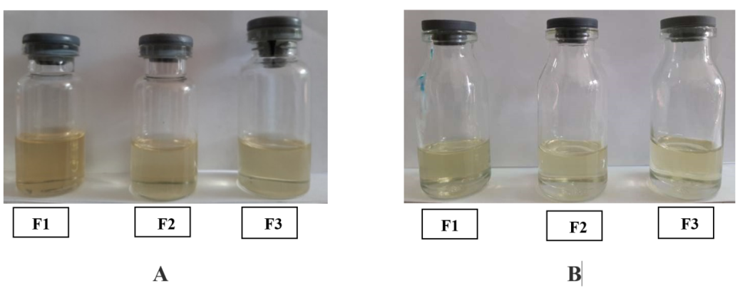Fig. 3: Cycling test result of carrot seed oil nanoemulgel preparations (A: Before Test, B: After Test)
