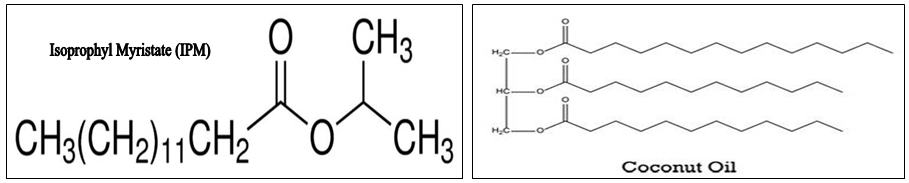 The IPM structure in fig. 8, does not contain medium and long chains, whereas VCO tends to have medium chains up to C12, which are physically and chemically disturbed by oxidation reactions due to the influence of temperature and heat during the storage process. Hydrolysis will accelerate the rancidity of VCO oil [26].