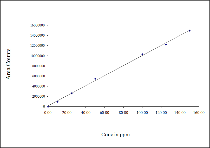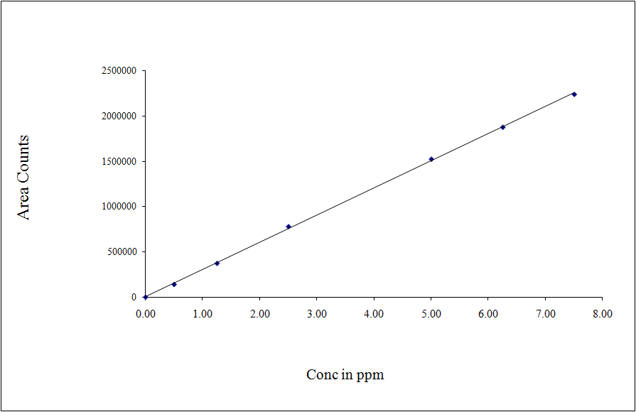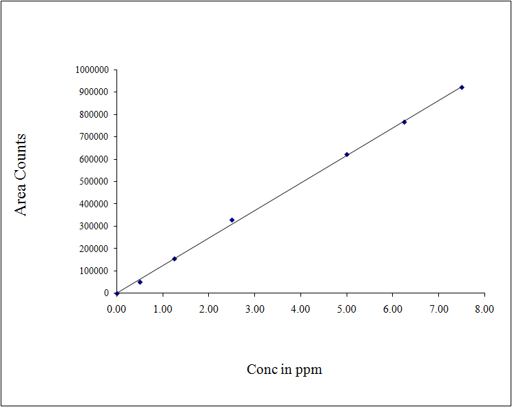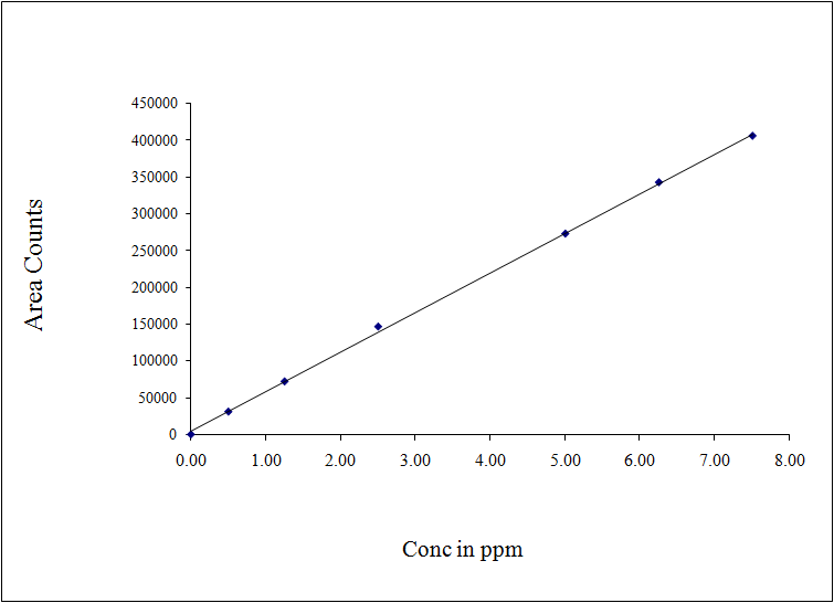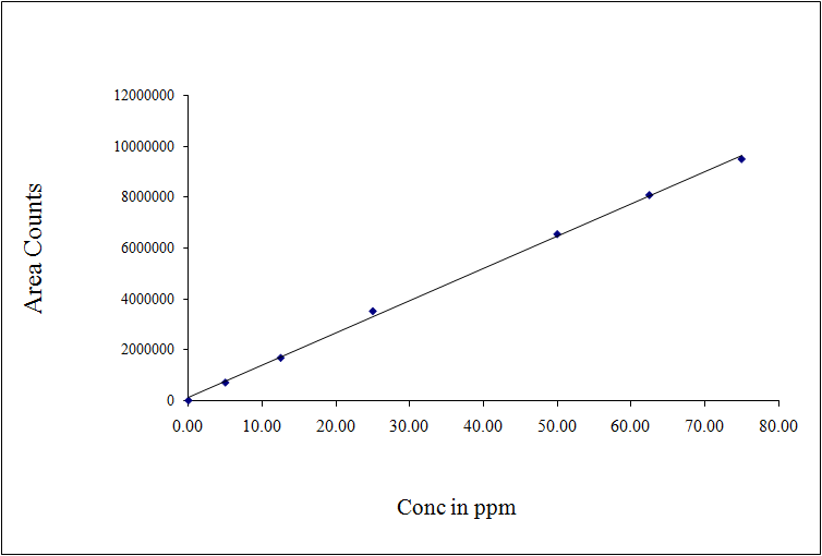 The linearity of the analytical approach is its capacity to generate outcomes within a definite scope. Peak area was directly proportional to the analytes concentration in the sample for the evaluation of the linearity spectrum; six series of standard solutions were chosen. Using the peak area versus the concentration of standard solution, the calibration curve was plotted and the regression equations were measured. The system of least squares was used to measure the slope, coefficient and intercept of correlation.