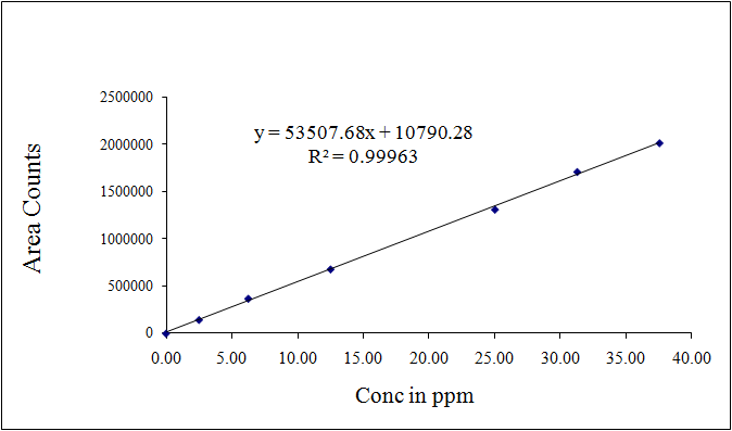 Linearity was determined by drawing a calibration curve of peak response against their respective concentration. From this calibration curve it was found that the curve was straight line in the range of 4-60 µg/ml of choline salicylate and 2.5-37.5 µg/ml of tannic acid. The regression equations for choline salicylate was Y= 63382.68x+16579.44 (R2-0.99989) and Y= 53507.68x+10790.28 (R2-0.99963) for tannic acid respectively [25].