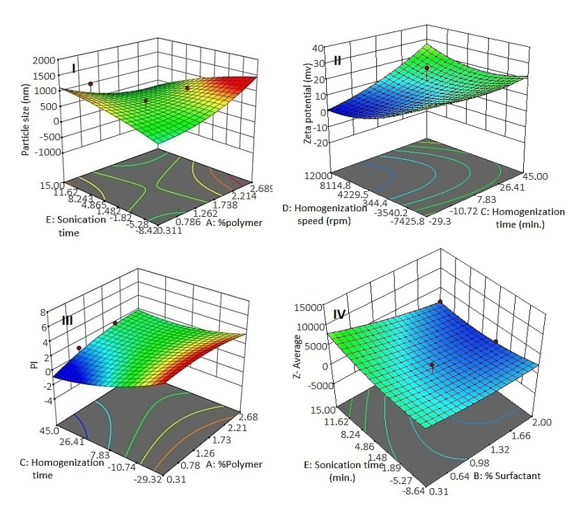 Table 4: Evaluation of the effect of independent variables on other dependent variable in the formulation of polymeric nanoparticle