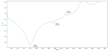 The sample's thermal behavior was investigated by using DSC studies. Accurately weighed samples were placed on the sample pan in hermetically sealed condition. At the rate of 20 °C/min from-40 °C to 300 °C test samples were heated under stable nitrogen cleansing at a rate of 40 ml/min.