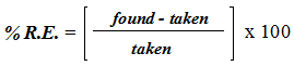 The intra-day precision were performed in the same day and inter-day precision i over five different days (for each level n=6). The percentage relative error (RE%) was calculated using the following equation: