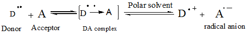 In polar solvents such as methanol or acetonitrile, complete electron transfer from the MEM (D), as an electron donor, to the acceptor moiety (A) takes place with the formation of intensely colored radical ions with high molar absorptivity values, according to the following scheme: