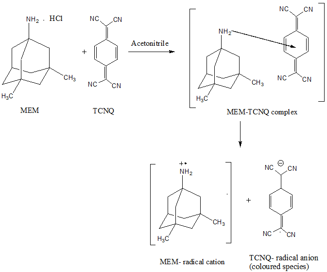 Scheme 1: Proposed reaction pathway for the formation of charge transfer complex between MEM and TCNQ