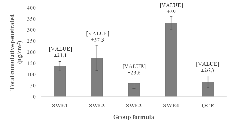Fig. 3: Total cumulative amount of penetrated sesewanua extract emulgel; Data represents mean±SD, (n=3)