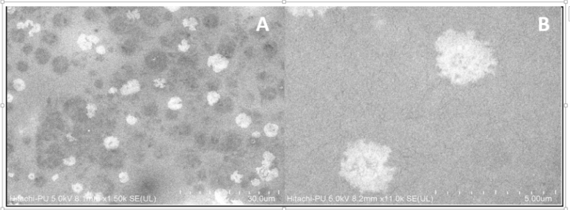 The surface topography of optimized coated SLN was clearly explained by FESEM analysis of the Coated Optimized formulation, as illustrated in fig. 5. The particle was rough, nearly spherical, and monodisperse in nature, with Tween 80 surface modification of the SLN obvious in the FESEM image [20, 21].