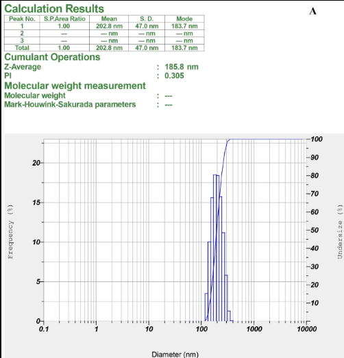 To obtain optimal particle counts, all samples were diluted in a 1:10 ratio with deionized water. Zetasizer was used to determine the particle size and zeta-potential of optimal SLN dispersions (Malvern Instruments Ltd., UK). Before measurement, all samples were diluted with double distilled water to attain an acceptable concentration [21-26].