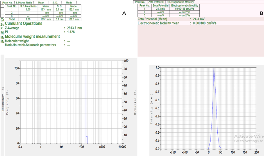 Fig. 6: (a) Particle size distribution curve, (b) Zeta potential curve images of coated optimized donepezil SLNs