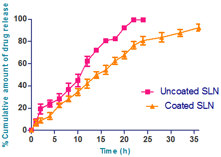 Fig. 7: In vitro drug release of (F14) before coating, after coating of SLNs (Data represents in mean±SD (n=3))