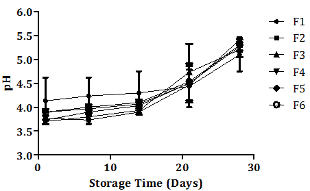 The organoleptic observations shown in table 3 below describes that all formulas F1, F2, F3, F4, F5, F6 have a similar consistency. The consistency of F1 and F3 was semi-viscous, while F2, F4, F5, F6 have a viscous texture.