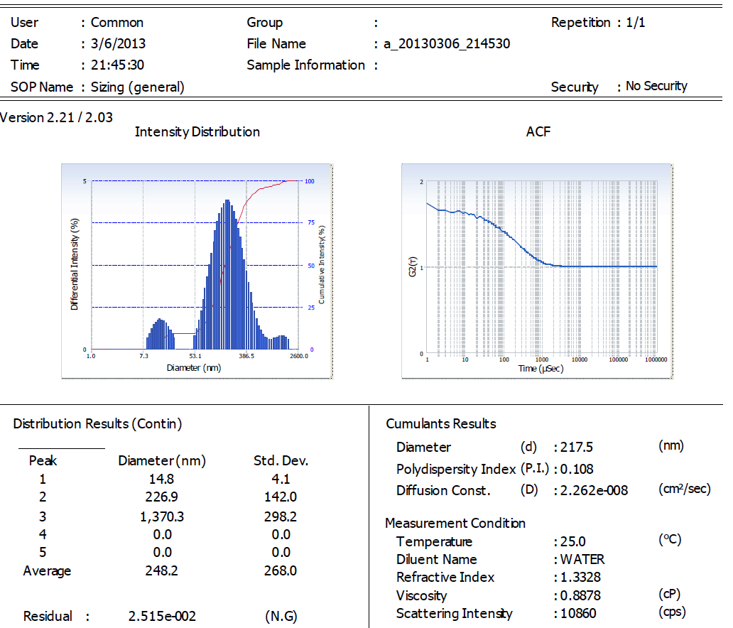 The mean globule size (MGS) and polydispersity index of the emulsion was determined by light scattering based on laser diffraction using the particle size analyzer (Beckman Coulter Counter Delsa Nano C, USA).