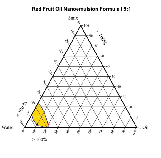 Fig. 1: Ternary diagram of red fruit oil nanoemulsion