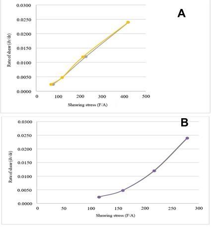 Fig. 5: Rheogram of (A) Nanoemulsion cream and (B) Nanoemulsion gel
