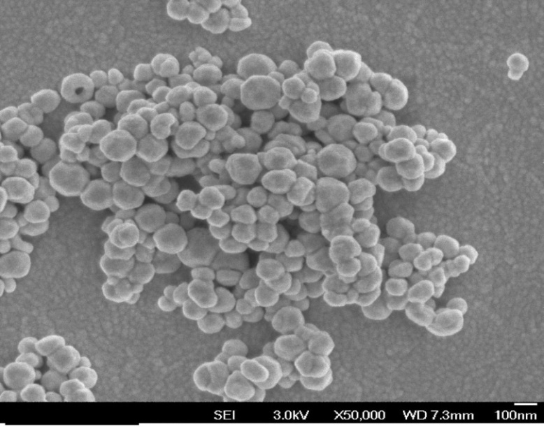 The mean particle size of astragalin-loaded polymeric nanoparticles was 121±2.6 nm (fig. 8). The zeta potential of the same was found to be-25±1.4 mV (fig. 9), and it is sufficiently high to form stable pharmaceutical preparation. It is reported that nanoparticles with a large negative or positive value of zeta potential are less prone to aggregation or an increase in particle size indicate good stability [16]. To provide information on the morphology of the optimal astragalin-loaded polymeric nanoparticles, SEM was used to take photos, as shown in fig. 10. The optimized nanoparticles are spherical.