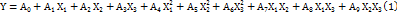 Each response parameter can be evaluated by the quadratic model using multiple regression analysis, as shown in equation 1.