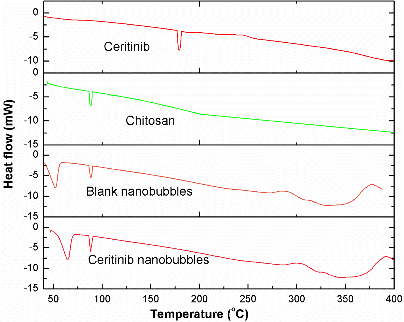 Chitosan has gained attention because of its natural origin, biodegradability, biocompatibility, extremely low immunogenicity and antibacterial properties. Chitosan is a N-deacetylated derivative of chitin, which is one of the most abundant biological materials [10, 11]. Chitosan further has direct and indirect anti-cancer properties, making it a better drug carrier. With regards to the study, we aimed to develop ceritinib-loaded chitosan nanobubbles with suitable physicochemical properties and sizes in order to enhance the therapeutic utility of the drug.