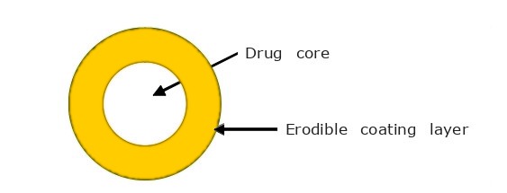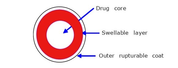 Fig. 2: Delivery system containing rupturable coating layer [30]