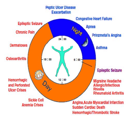 Jha N, Bapat S. Chronobiology and chronotherapeutics. Kathmandu Univ Med J (KUMJ). 2004 Oct–Dec;2(4):384-8. PMID 16388257.