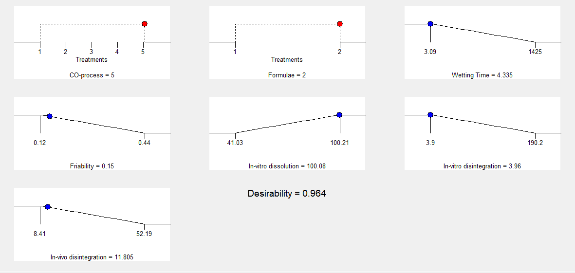The experimental results were analyzed using Design-Expert software version 13 (Stat-Ease, Inc., Minneapolis) table 3, to study the effect of variables on the ODTs’ properties in terms of hardness, friability, disintegration time, wetting time, and dissolution. to reduce the number of experimental runs needed for conducting the study [28].