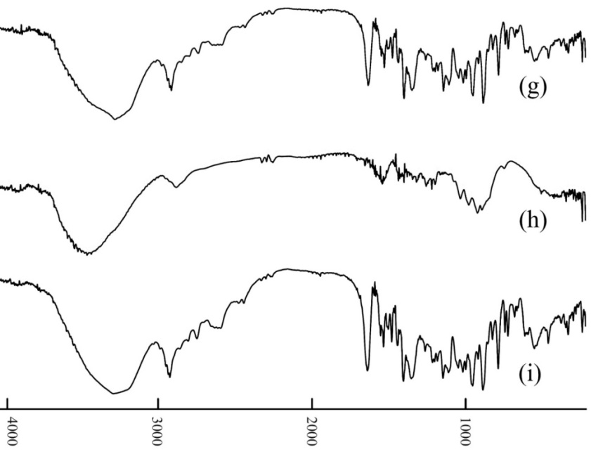 Fig. 7: FTIR spectrum for (g) F8, (h) Prosolve SMCC 90®, (i) F8+Prosolve SMCC 90®