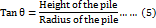 A widely accepted funnel method was utilized to determine the angle of repose. A funnel was adjusted with the help of a stand so that its lower tip lies at the height of about 2 cm from the horizontal surface. The lower tip was closed by using cotton. Five grams of accurately weighed powder were loaded on the funnel and the cotton was removed slowly and the powder was allowed to flow. The height and diameter of the powder pile were noted and the angle of repose was calculated as in Equations 5 and 6. For every measurement, data were investigated thrice. The relationship between flowability and angle of repose is given in table 2 [15].