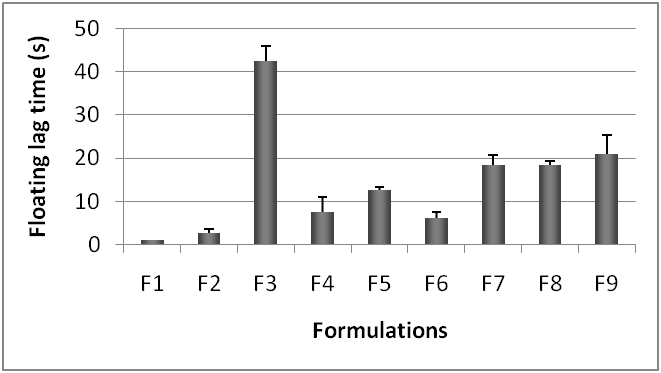 Fig. 2: Bar diagram representing the floating lag time of all the evaluated batches, Data expressed as mean±SD, n=3