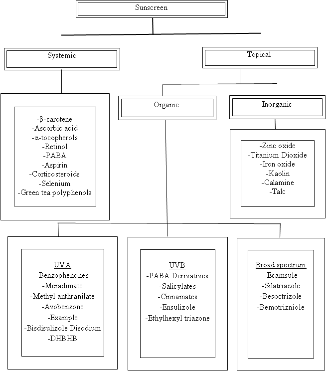Keywords: Photoprotection, UVA, UVB, Inorganic sunscreen, Organic sunscreen, Conventional sunscreen