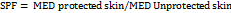 An SPF measured by the difference between UV energy necessary to create MED (minimal erythemal dose) in protected skin and the Ultraviolet energy required to generate MED in unprotected skin is what characterizes an effective sunscreen. In general, sunscreen with high SPF value is having the capability to prevent erythema upon exposure to UV radiation [13]. The formula for calculating the minimal erythematous dosage of sun protection factor may be found below:
