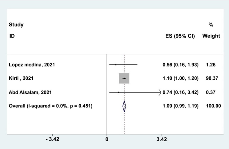 Fig. 3: The pooled day to negativity (DTN) OR for COVID-19 patient who received ivermectin treatment