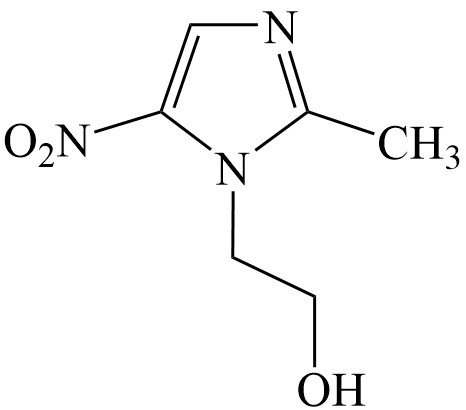 Metronidazole is used with other antibiotics for the treatment of peptic ulcer disease caused by Helicobacter pylori. It is also used in the treatment of trichomoniasis, vaginitis, and urethritis caused by Gardnerella vaginalis, giardiasis, and amoebiasis. Metronidazole is indicated for intraabdominal infections, skin structure infections, bacterial septicaemia, bone and joint infections, central nervous system infections, lower respiratory tract infections, and endocarditis [1]. The chemical structure of metronidazole is shown in fig. 1.