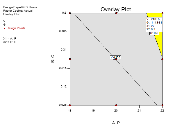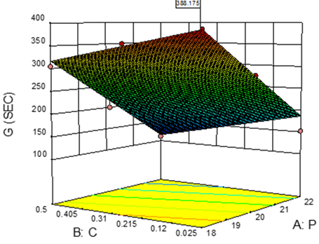 The contour plot and response surface plot (fig. 1) confirmed the linearity of the model with no interactions between the independent variables. The model was found to be significant. (p = 0.0227).