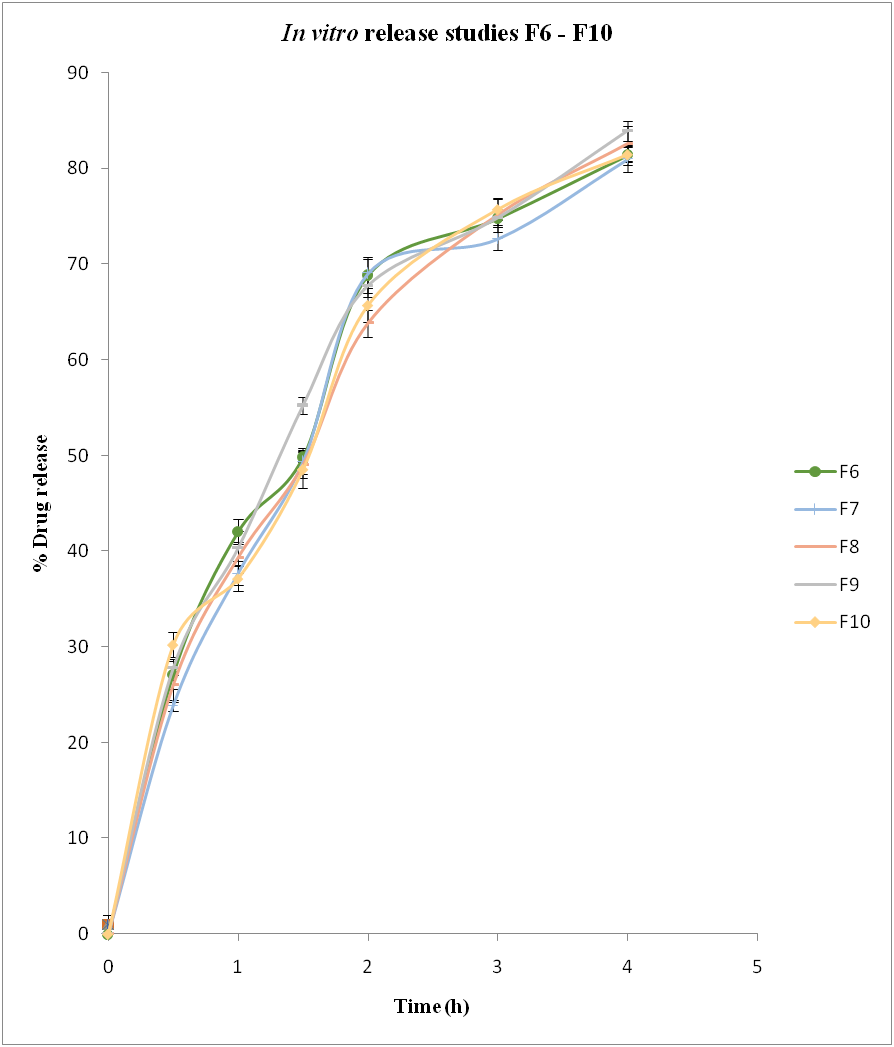 Fig. 5: In vitro release studies for formulations F6–F10, Note: All data is expressed as mean±SD, n=3