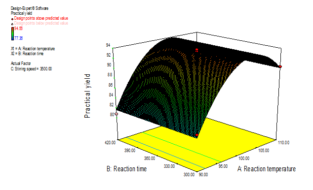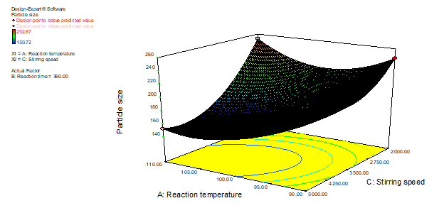 Exploratory experimentation at initial stages was carried out for determination of main factors and their appropriate optimal range. The influence of three factors on percentage yield (PY) and particle size (PS) were checked and notified as the most critical ones within range of 90-110 °C, 300-420 min, 2000-5000 rpm, respectively.