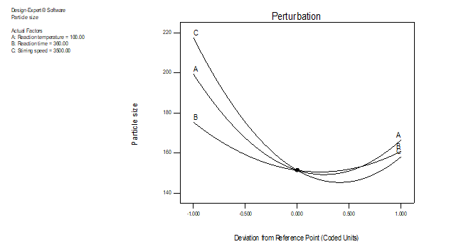 PS analysis of NS ranged from 150.72–252.67 nm (table 2). Significant antagonist action of RT (A), RCT (B) and SS (C) on the mean PS was revealed by generated quadratic model. A fair similarity was observed between theoretical (predicted) and observed values.