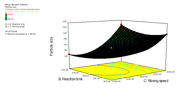 Fig. 4E: CP showing the interactive effect of B and C on particle size at a fixed level of A