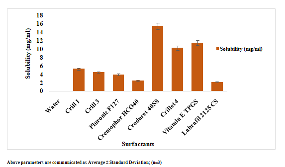 Fig. 2: Solubility of Ibrutinib in various SF, Data is given as mean±standard deviation; (n=3)
