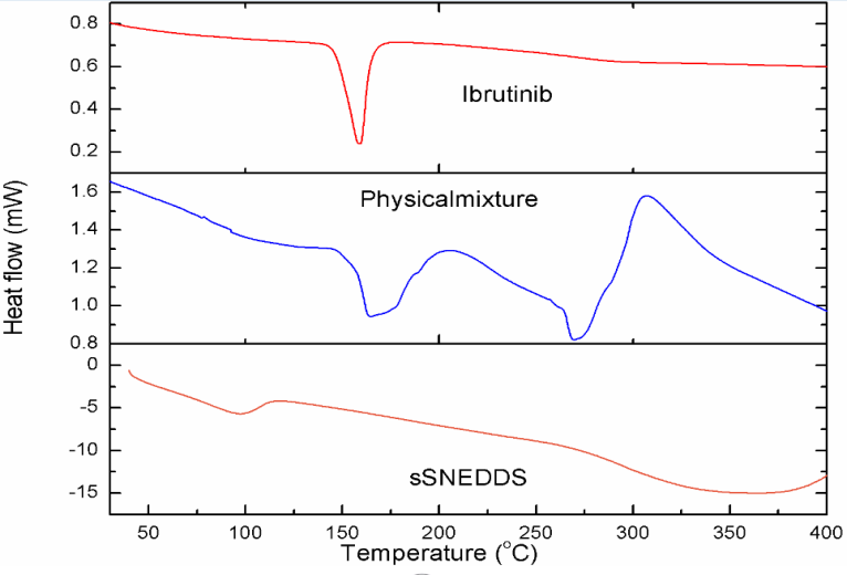 Pure ibrutinib drug and solid S-SNEDDS powder thermograms acquired (DSC Q200 TA, Universal V 24.4 software, Bangalore, India) as described by Kaur et al. [18]