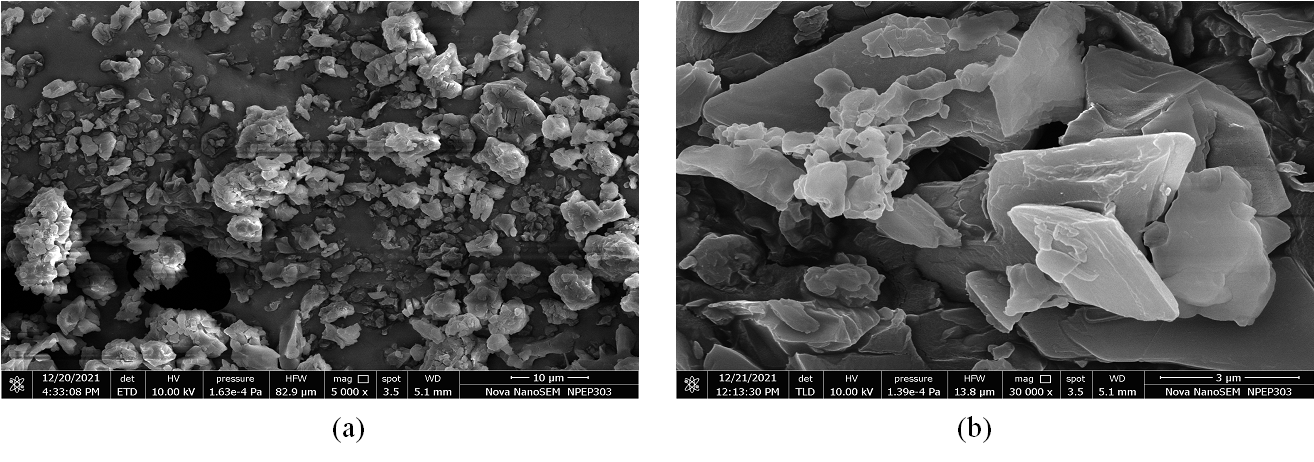 Fig. 9: SEM Photomicrographs of (a) binary formulation EME-βCD-BC-FDC and (b) ternary formulation EME-βCD-HPMC-TC-FDC