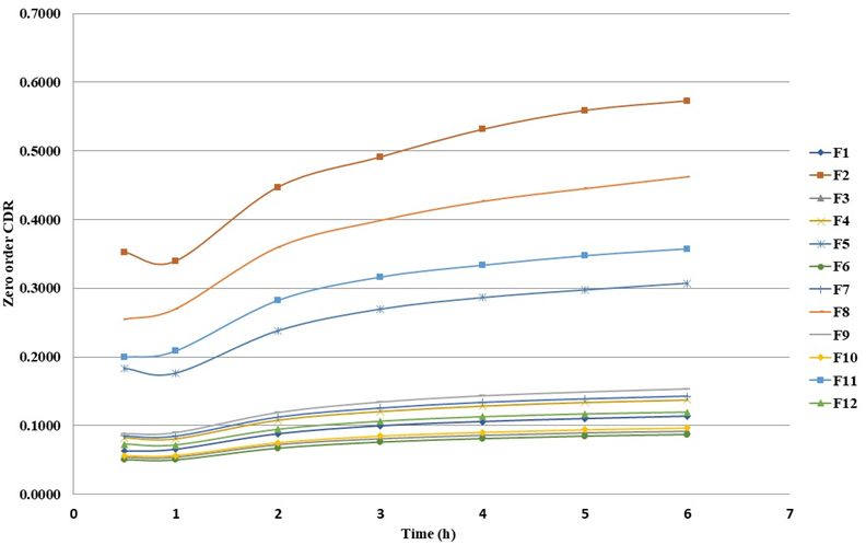 In the zero-order (fig. 6) the graph was plotted between time and cumulative percentage release.
