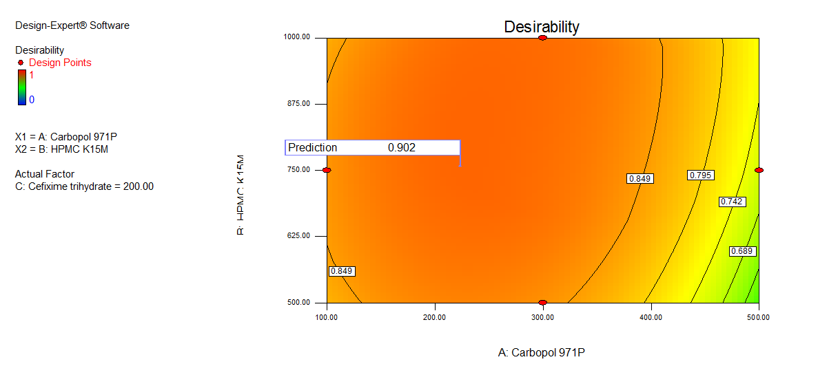 Fig. 8: Contour plot showing the microsphere formulation of maximum desirability